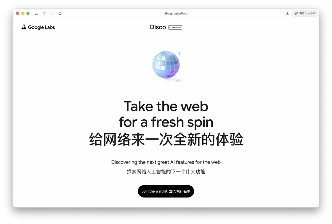 不过即便如此,Chrome 毕竟还是「改造」,Google 最新发布的 AI 浏览器 Disco,才真正称得上:原生 AI 浏览器。