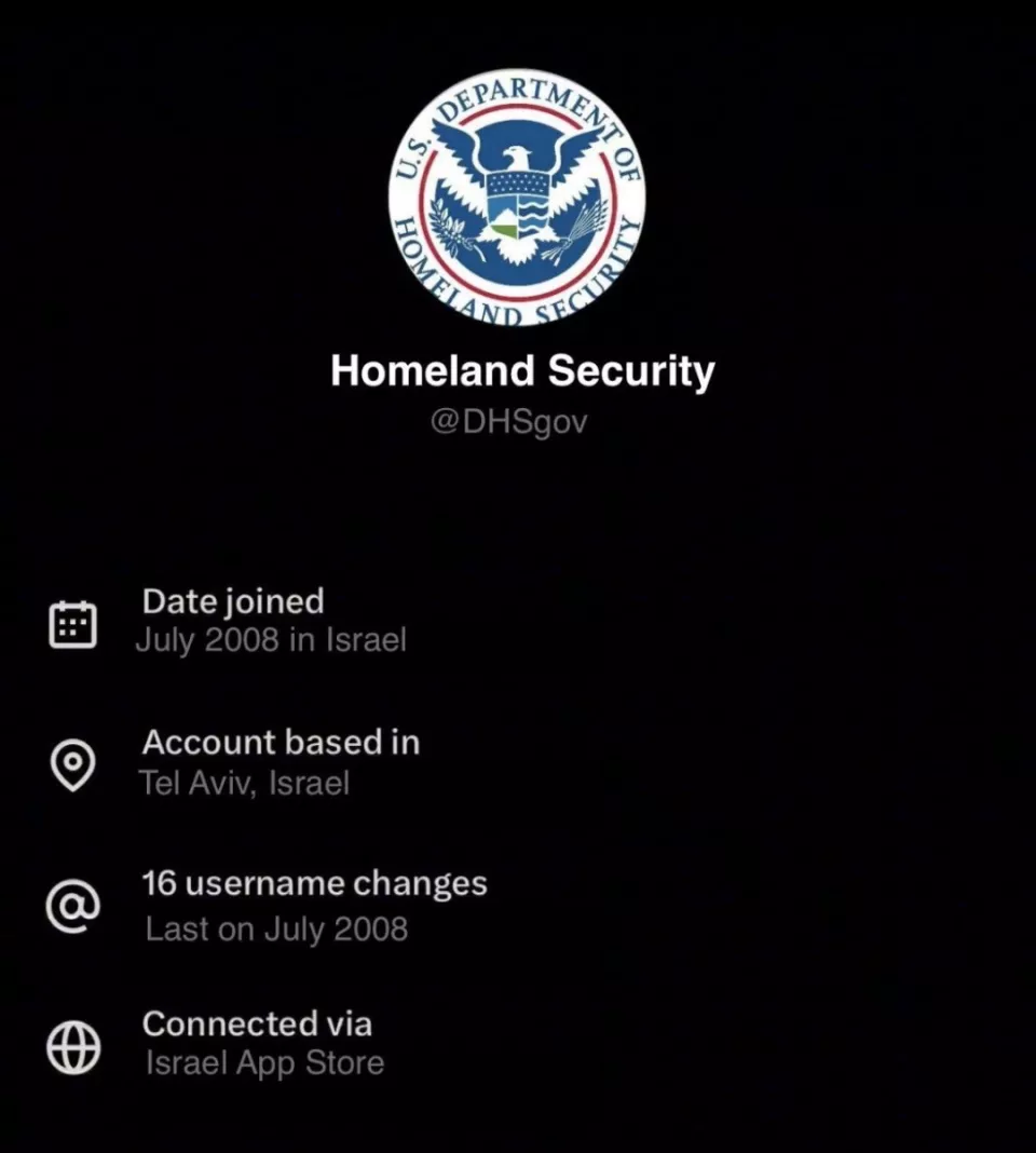 就连国土安全部的位置,也被指位于以色列。一位网友问称“美国政府部门的官方账号为何显示在以色列”,X平台AI大模型Grok生成的回复称:美国国土安全部本身设在美国,但其下属部门美国移民及海关执法局(ICE)在以色列特拉维夫设有国际办事处。