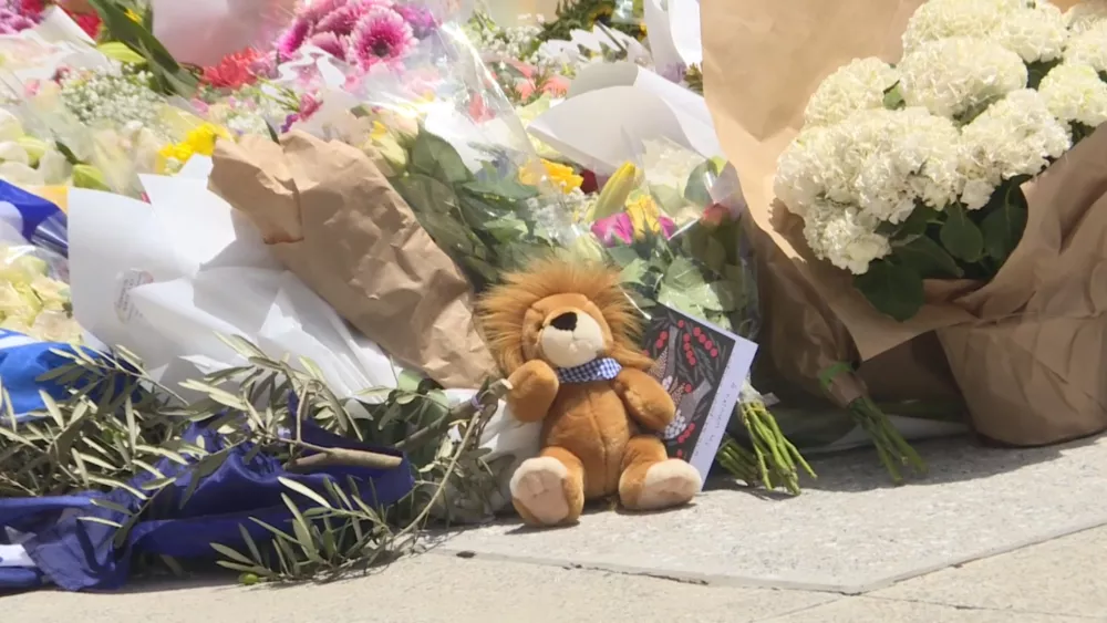 15日上午,大批悉尼民众来到邦迪滩,送上鲜花和各种礼物以悼念死难者。