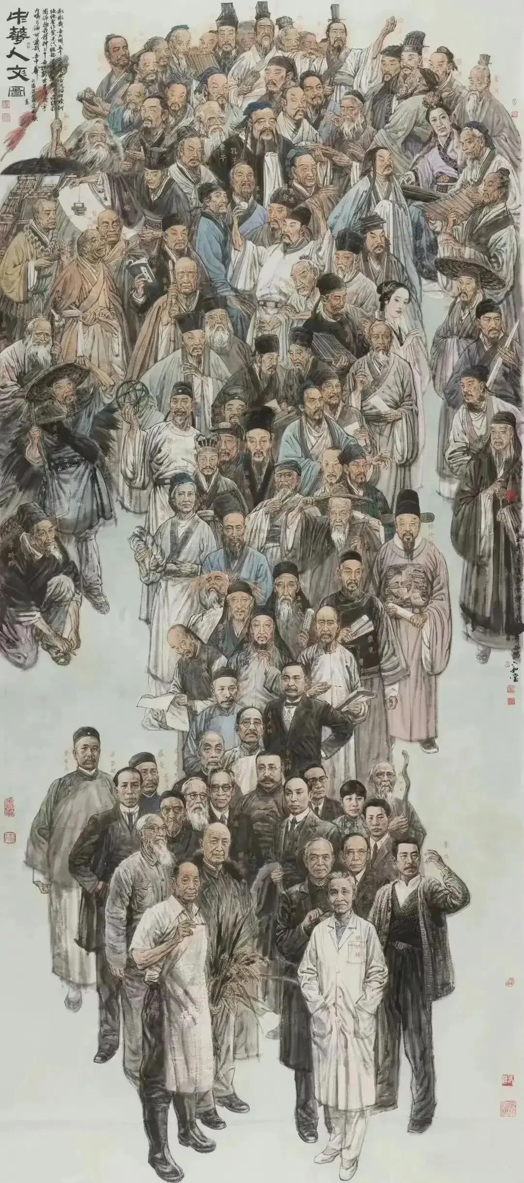 中华人文图:跟上一幅不一样的是,这一幅里的人物大多是在某一个领域非常杰出的人物,儒释道各家,诗词歌赋到现在的文农医,他们都在中国的历史上留下了浓墨重彩的一笔。