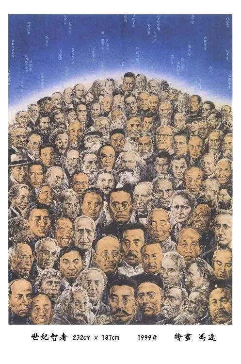 世纪智者:是一幅世界人文智者群像图,人类文化方方面面的代表人物出现在同一个画面上,从托尔斯泰、马克思、爱因斯坦到梅兰芳、郭沫若、钱学森……数以百计的头像构成“智者”的星球。