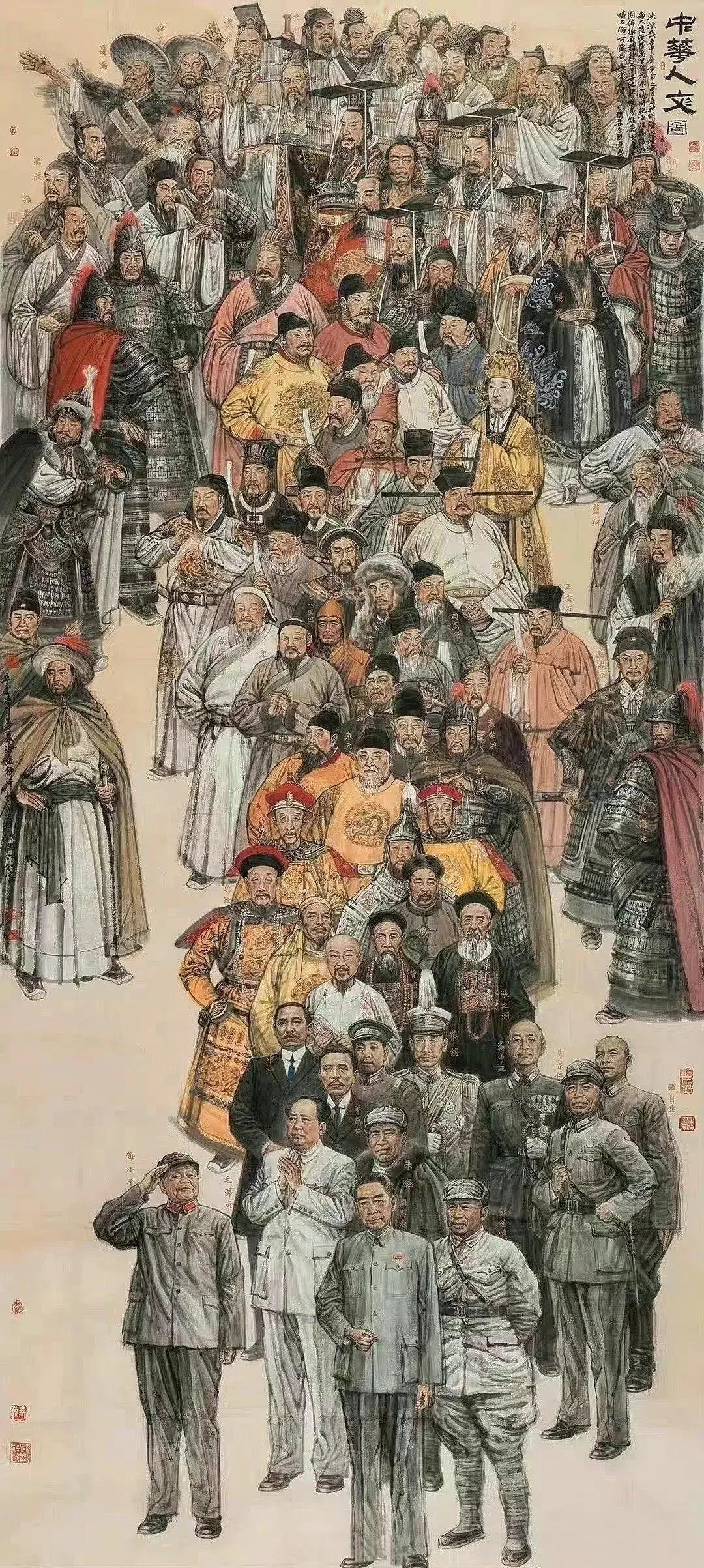 中华人文图:一幅长卷轴,画出了中华上下五千年的壮阔,从夏商周到新中国,历代领袖人物都在其中,都有着清晰的面孔,华夏民族的悠久历史感扑面而来。