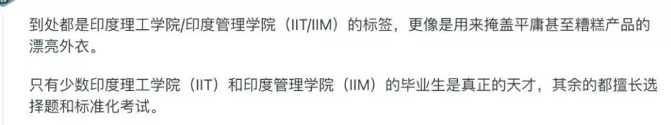 在REDDIT上,有不少老美都在抱怨,说自己的印度裔同事虽然来自IIT,IIM这样的名校,但一做起事儿,就让他们对名校光环祛魅了。