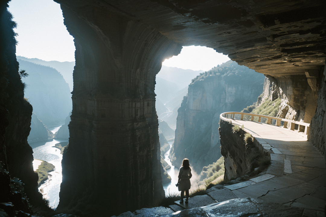 站在桥中央向下俯瞰,峭壁如刀削般竖立,岩石颜色从深褐到淡黄不断变化。下方的河水在阴影中蜿蜒流动,水声与风声混合成一种低沉的轰鸣,回荡在岩壁之间。有那么一刻,仿佛整个世界只剩峡谷的呼吸声,而城市的喧嚣被隔绝在遥远之外。