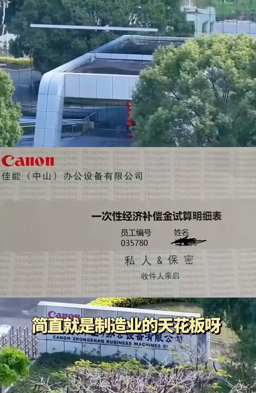 一位在佳能中山工厂干了18年的员工,在工厂停产后,收到了这笔钱。他大概是出于“这辈子头一回见这么多钱属于自己”的朴素喜悦,晒了出来。