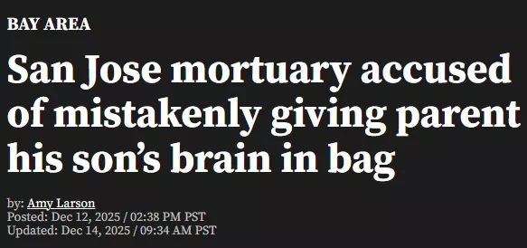 加州一名男子今年5月去世,家属与殡葬公司签约购买全套丧礼服务,包括遗体防腐及衣物更换等。没想到,死者父亲取回儿子的衣物后,惊见袋中装的根本不是衣服,而是人体脑部组织。律师指出,这起事件造成家属极度心理创伤,将控告葬仪社涉嫌过失、诈欺及违约等,并要求陪审团审理。