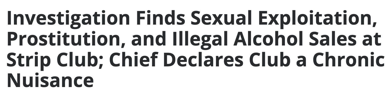 脱衣舞俱乐部被控:X剥削+卖淫+非法售酒西雅图警局