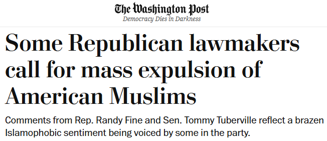 共和党议员呼吁大规模驱逐穆斯林华盛顿邮报