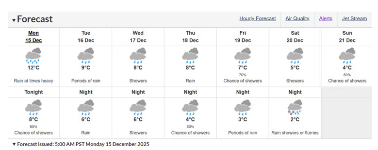 这几天,大温地区的雨势明显没有要停下来的意思。气象部门提醒,雨伞先别收,因为接下来一周不仅还有持续降雨,降雪也可能很快加入天气舞台。