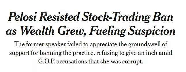 当年,由共和党控制的众议院通过了一项禁止内幕交易的法案,法案中包含一条名为“佩洛西条款”的规定,禁止国会议员和行政部门官员因其职位而获得首次公开募股的特别配售权。