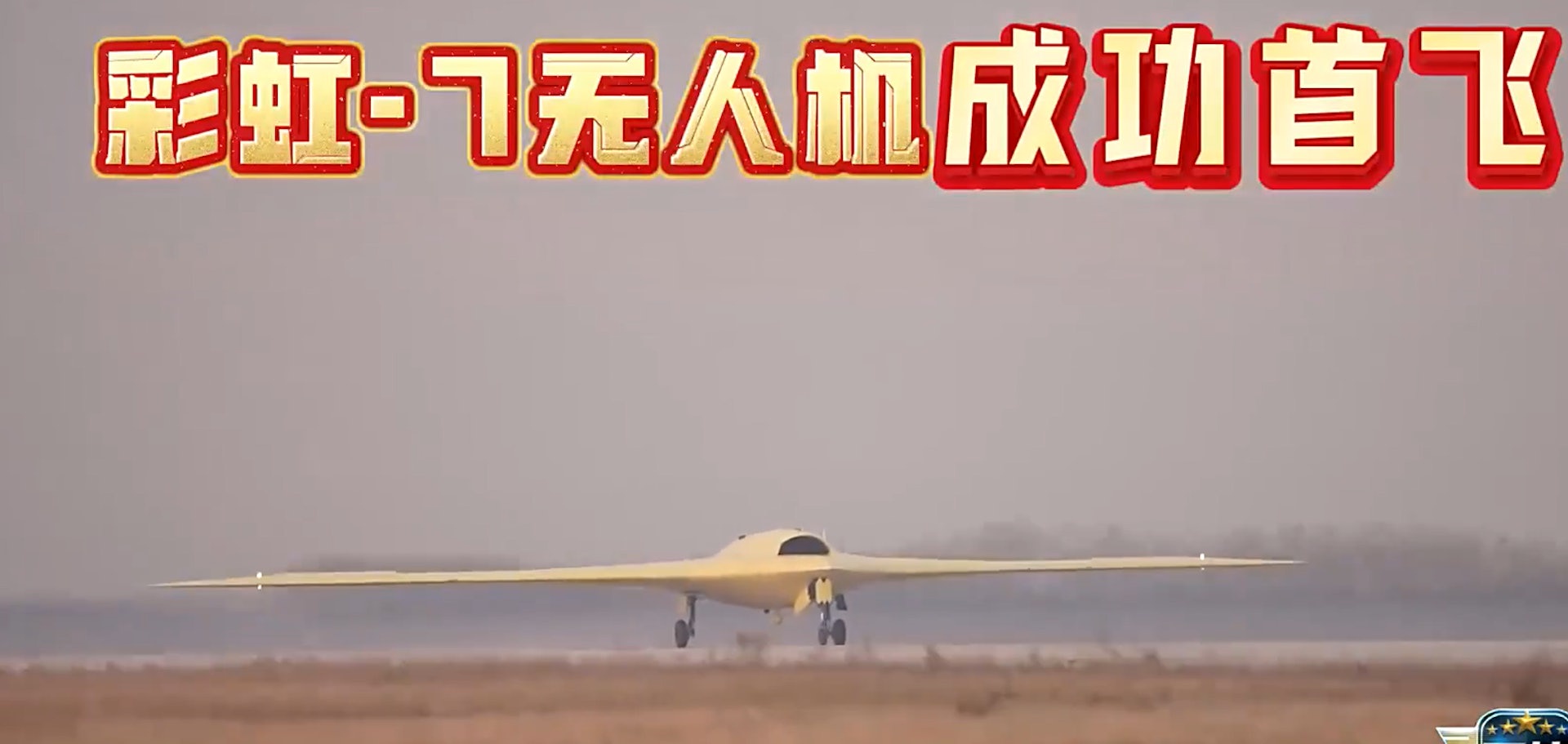 全球体型最大军用无人机、号称「空中航母」的无人机母舰「九天」,上周被官宣在中国西北的陕西省完成首飞。紧接着,被称为「空中大蝙蝠」的中国国产大型高空高速隐身无人机「彩虹7」,星期一(12月15日)同样被官宣在西北成功首飞。 彩虹-7高空高速长航时无人机在西北某机场成功首飞。(军情时间到) 彩虹-7高空高速长航时无人机在西北某机场成功首飞。(军情时间到)