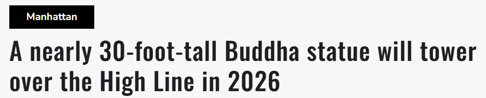 一座高达27英尺(约8.2米)的巨型佛像雕塑将于明年亮相纽约曼哈顿高线公园(The High Line)。