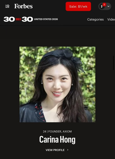 洪乐潼入选“福布斯30岁以下30人”榜单 图源:福布斯官网