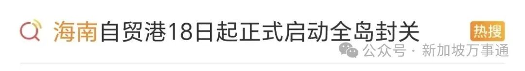 2025年12月18日,海南自由贸易港全岛封关将正式启动!消息一出直接引爆热搜,相关话题刷爆全网,引发全球热议! “怎么突然要封关?游客还能正常出入吗?”“以后去海南要办通行证吗?”“是要开免税店吗?”“海南要成为中国版新加坡吗?!”... 今天,万事通就带大家深度揭秘海南封关背后的隐情!而作为东南亚经济枢纽的新加坡,又会因此受到哪些影响?
