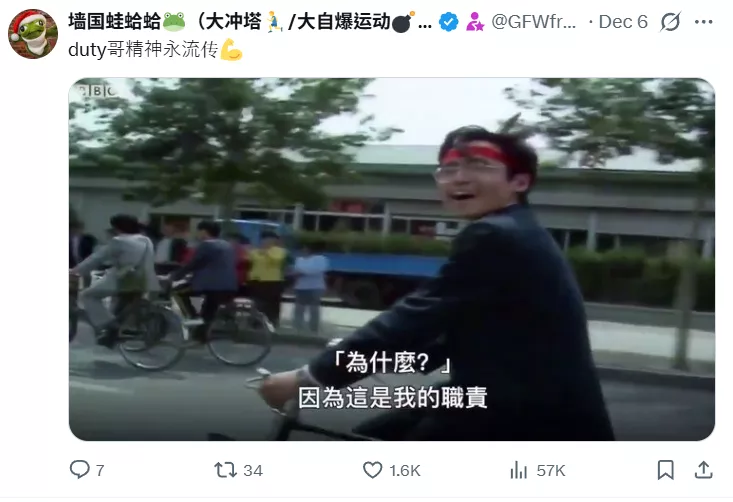 香港人模仿“六四事件duty哥受访视频”,表达对香港政府的不满。(撷取自X@whyyoutouzhele)