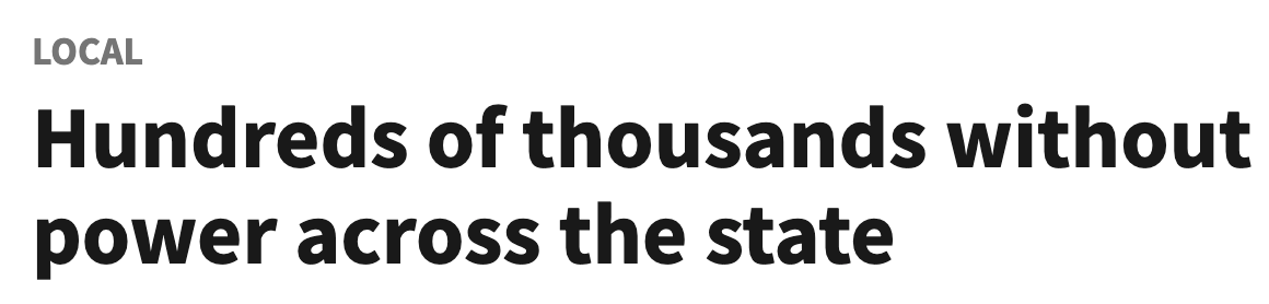 一场强烈风暴自周二(16日)下午起席卷华盛顿州,狂风夹杂暴雨迅速来袭,造成大范围停电。