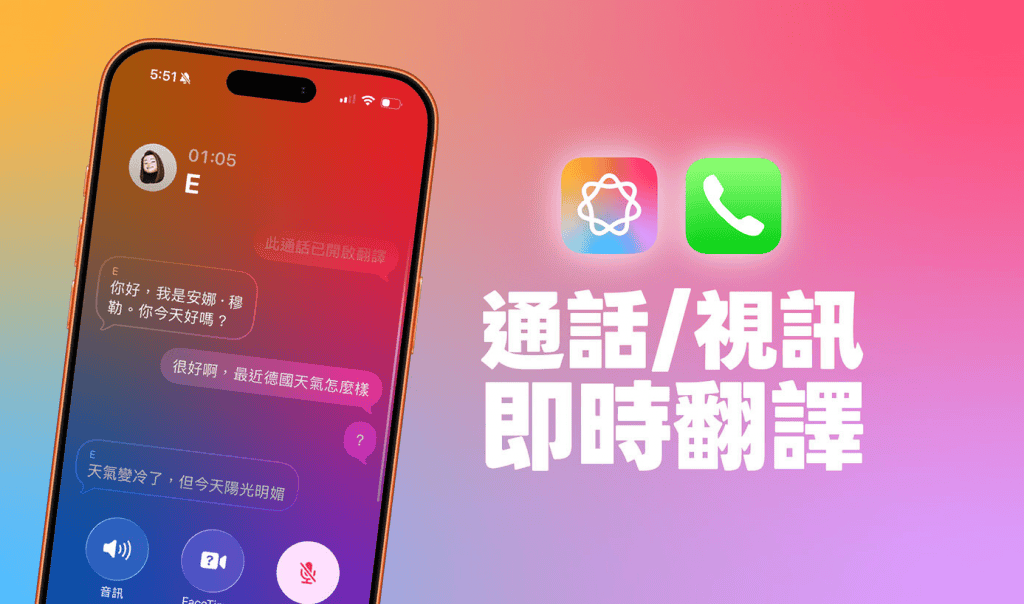 无论你是使用一般的iPhone 电话通话,还是进行FaceTime 视讯通话,都能随时快速开启「即时翻译」功能。启用后,AI 会即时将对方说的语音翻译成你设定的语言,也会将你说的话自动翻译成对方听懂的语言,且都会在萤幕上同步显示文字内容,让跨语言沟通变得更简单。以下是iPhone 通话即时翻译怎么用的详细步骤。