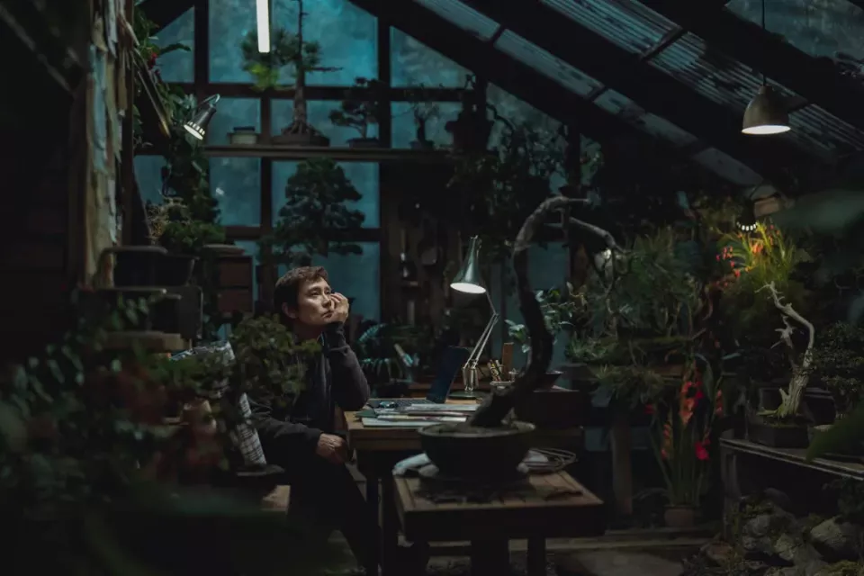电影中,柳万秀悉心照料庭院里的盆栽,用剪刀修剪枝叶,再用铁丝强行塑造出理想的形态。在某种程度上,万秀也是他所拥有的幸福生活的“园丁”,将自己的人生和家庭当作一个需要不断投入、修剪的盆景。但栽培也意味着某种暴力的修剪,电影有一幕是他用力过度,将树枝掰断。