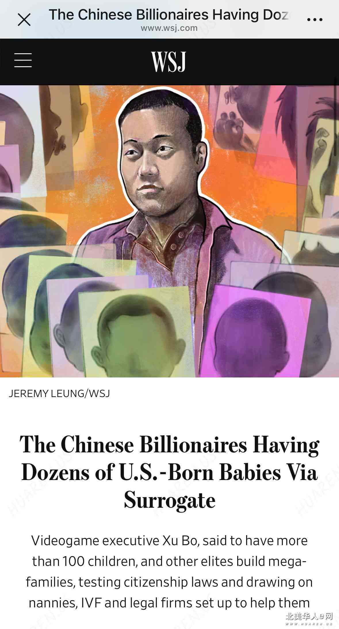 调查显示,籍贯中国湖北的游戏业富豪徐波(Xu Bo)。他在美国通过代理孕母方式,已生下或即将出生的孩子数量,远远超出一般家庭的合理范围。