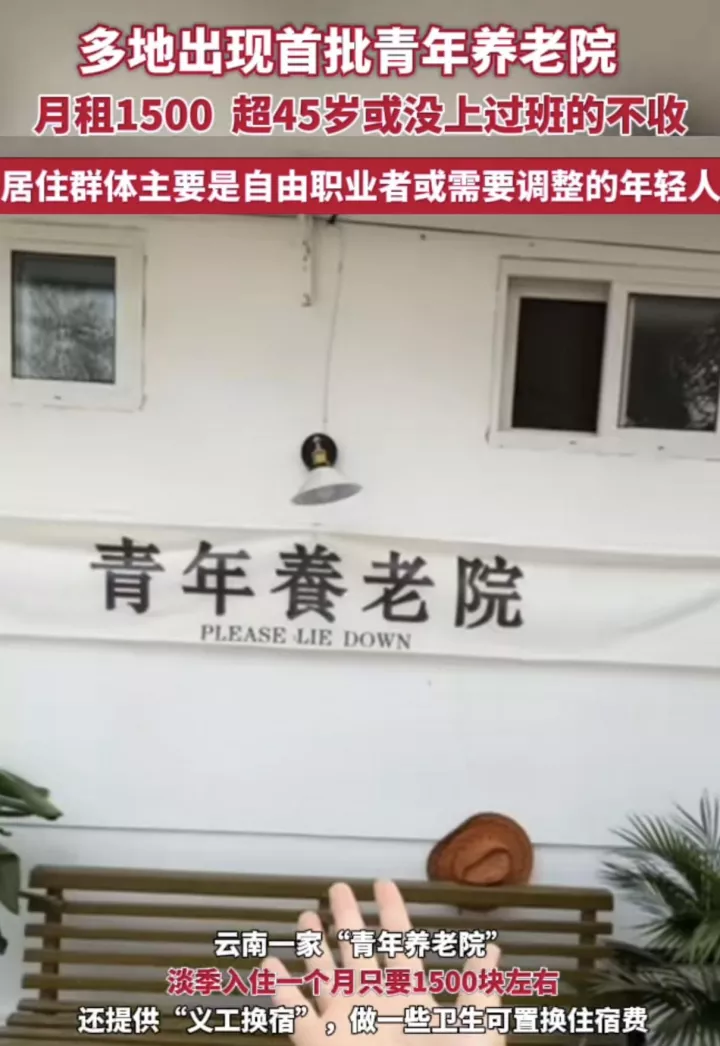 各地陆续出现过不少“青年养老院”,基本上这些青年养老院都有类似的标准,比如不欢迎没有工作过就直接选择躺平的人,也不要45岁以上的人等。