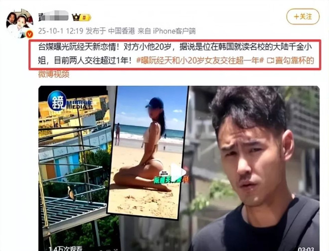前段时间,台湾男星阮经天被网友在韩国频繁偶遇,曝光了疑似恋情。