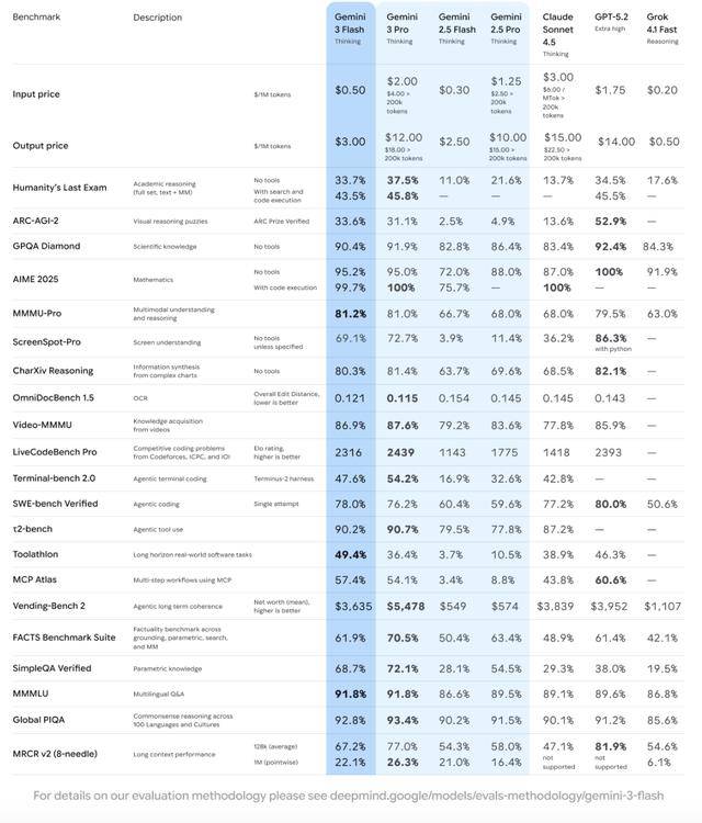 “Gemini 3 Flash 证明,速度和规模无需以牺牲智能为代价。”在博客中,官方放出豪言。从评测数据来看确实如此。