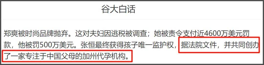 近期有网友爆料郑爽疑似和张恒在国外合开代孕机构,随后郑爽工作室小号火速否认,称郑爽从来不会沾染这些污糟事,一心扑在自己真正热爱的事业上,呼吁营销号不要为了流量热度,捏造谣言抹黑她。随后,相关报道被网友扒出,当年郑爽和张恒抚养权官司的细节也被曝光,令人震惊。 据大V翻译的外媒报道,当年郑爽和张恒在国外为两个孩子抚养权问题打官司,最终是张恒胜诉,获得孩子唯一监护权。据法院文件,并共同创办了一家专注于中...