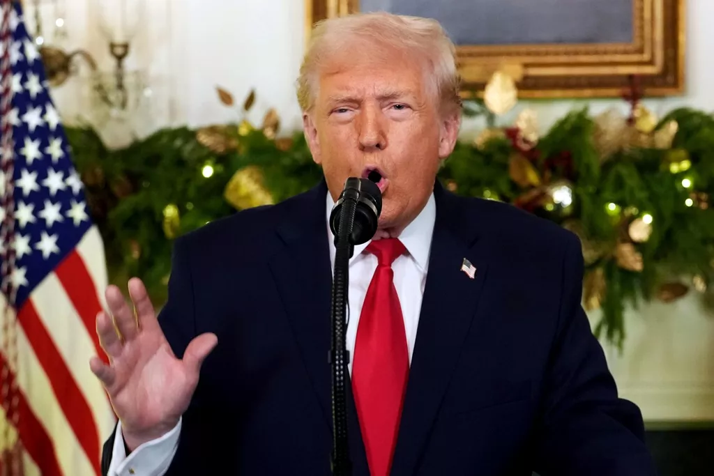美国总统川普17日晚间发表全国电视演说,外界关注他如机关枪扫射般的飞快语速,18分钟飙完演说。(美联社)