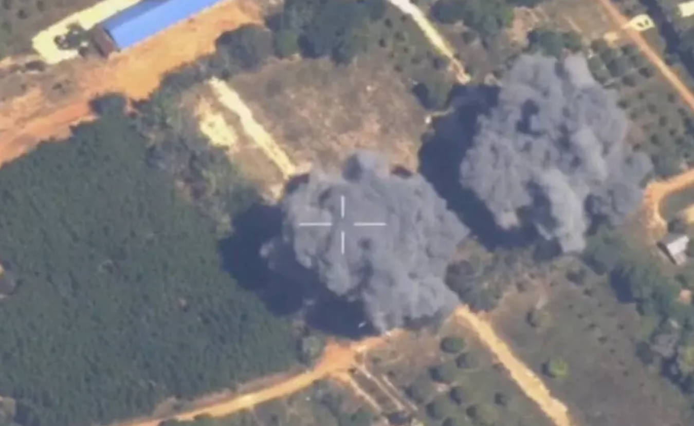 资料照片:画面显示,在柬埔寨班迭棉吉省普雷内普雷(Preah Netr Preah)争议边境地区,泰国方面称遭到空袭后,现场升起浓烟。此画面截取自2025年12月15日发布的一段视频。泰国皇家陆军/路透社供图。此图片由第三方提供。 via REUTERS - Royal Thai Army