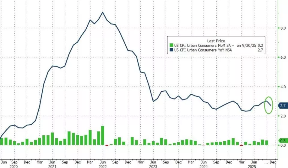 周四,美国劳工统计局延迟发布的报告显示,剔除波动较大的食品和能源价格后,11月核心消费者价格指数(CPI)同比上涨2.6%。这一涨幅低于两个月前录得的3%,显示通胀压力进一步缓解。