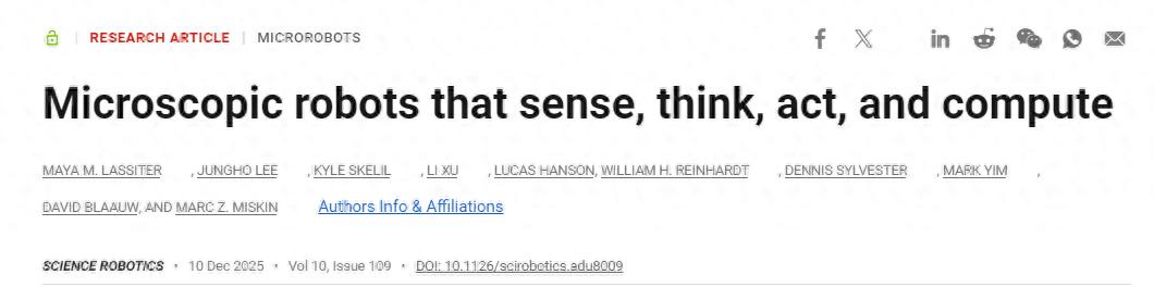IT之家 12 月 18 日消息,美国宾夕法尼亚大学与密歇根大学的科研团队成功研制出世界上最小的全自主机器人,于 12 月 10 日在 Science Robotics 上发表了一项成果。 这种机器人长约 300 微米、宽 200 微米,厚度仅为 50 微米,比盐粒还要小,内置计算机、电机和传感器,每颗成本仅 1 美分,有望为构建在人体内部署、执行各种医疗任务的微型机器人奠定基础。