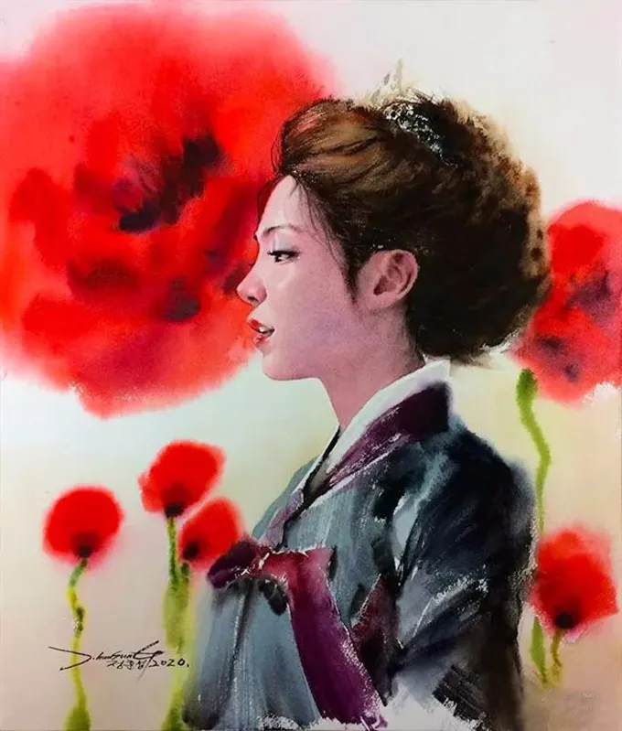 他的水彩画让人感到生命的美好水彩指南12/18/2025在韩国画坛的浩瀚星空中,Jung Hun-sung 宛如一颗熠熠生辉的明星,以其独特而卓越的艺术风格, 在水彩人物与炭笔创作领域绽放出令人瞩目的光彩,吸引着无数艺术爱好者的目光。 00