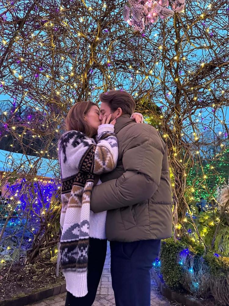 照片中有两人在布满小灯泡的树下深情拥吻,此外还有多张旅行、开餐的生活相,极浪漫超温馨。