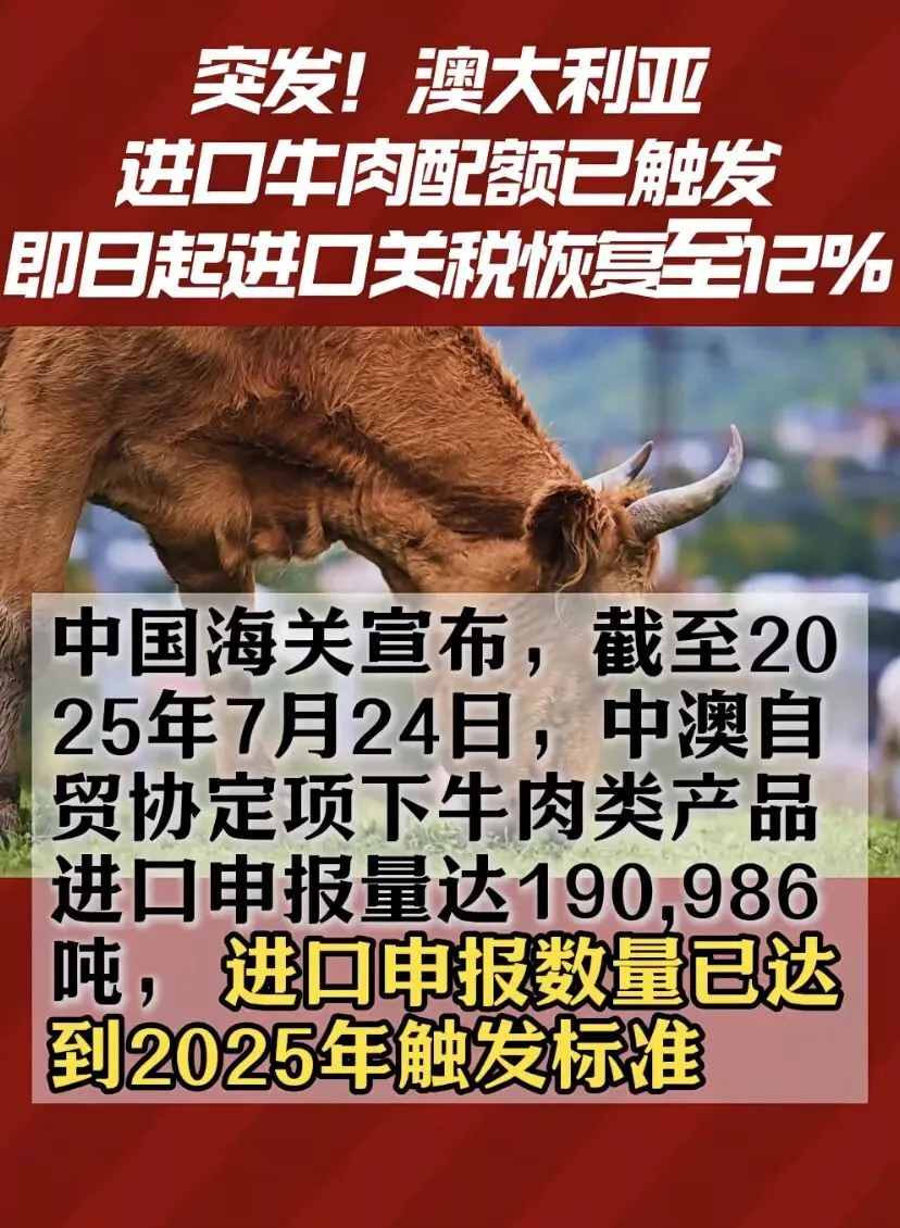据海关数据,近年来中国进口牛肉货值从2020年的约28.14亿元增至2024年的56.95亿元,占到国内市场的37%。即便加上关税,进口牛肉还是比国产的便宜,如果不是有进口配额限制,国产牛肉只怕会全军覆没。