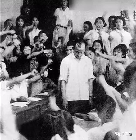 1.1966年6月,清华附中学生批斗副教导主任冯玉中。部分同学还戴着红领巾