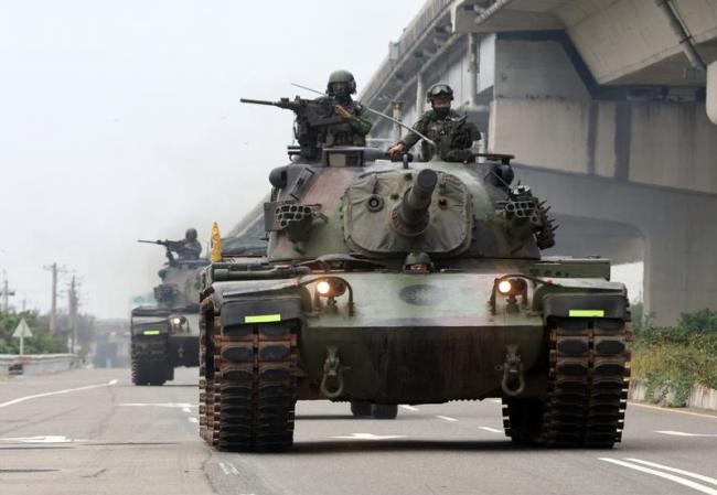 图为国军陆胜一号操演不久前在彰化县大城乡台西村海堤举行,国军装甲542旅、机步第234旅进行对抗,战甲车行经台61线平面道路。(记者黄仲裕/摄影)