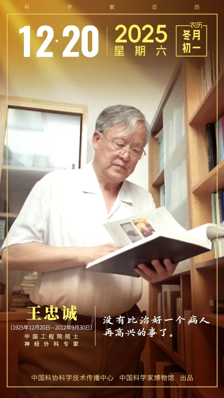 王忠诚1950年毕业于北京大学医学院。在抗美援朝战场上,他目睹志愿军脑外伤伤员因缺乏专业救治而不幸牺牲,由此立志开创中国的神经外科事业。王忠诚毕生致力于“为患者多做一点事情”,以顽强的毅力奉献于中国神经外科的开拓与发展,是该领域公认的奠基人和开拓者之一。他在脑干肿瘤、脊髓内巨大肿瘤等世界性医学难题的临床治疗上取得重大突破。