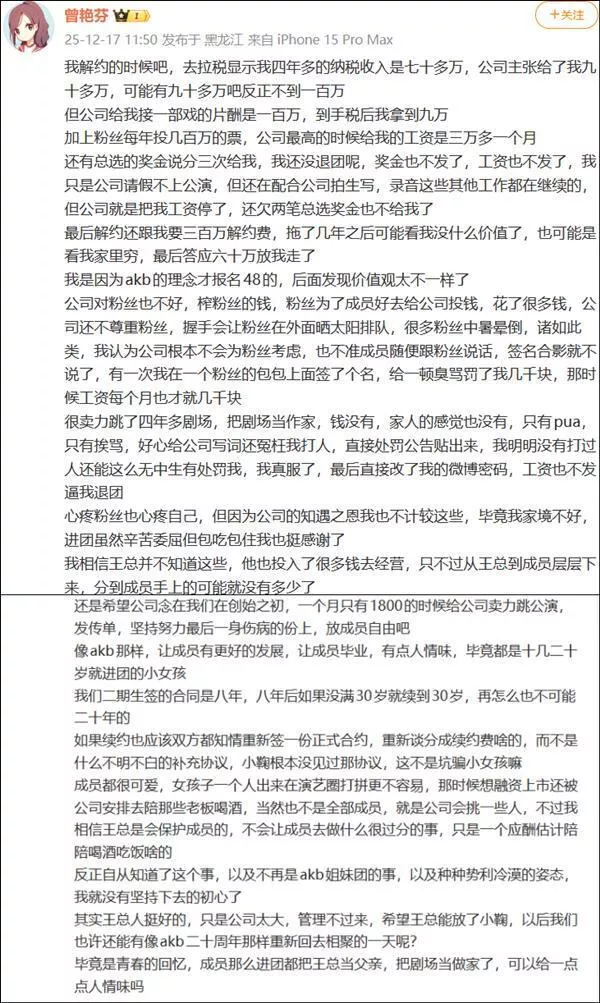 更让人无奈的是,粉丝们真金白银砸出来的打投钱,也没让偶像得到应有的回报。曾艳芬提到,粉丝们省吃俭用,有的甚至砸了几百万、几千万,就盼着偶像能在公司得到好待遇,可结果呢?艺人到手的钱少得可怜,几百万的打投款,最后到手里可能也就3万多,连十分之一都不到。