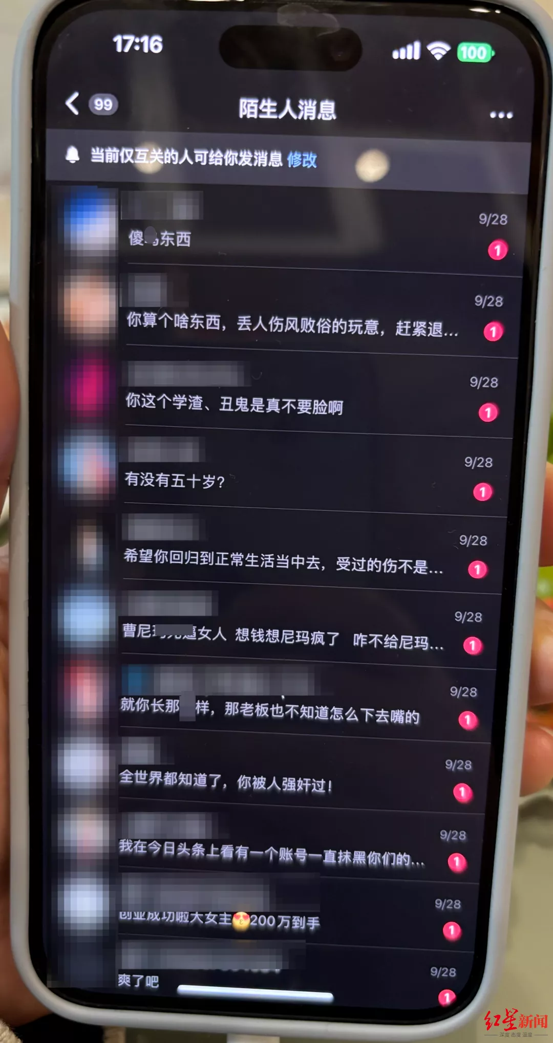 但这条视频在一个月之后发酵了。她打开社交媒体,发现评论区已不堪入目。有人质疑她若真患PTSD,不可能穿着案发时的衬衫出庭。有网民称夫妻俩“做局陷害”王某。有人P出她与王某的“合照”,有人把老魏P成“绿帽”。私信中充斥着辱骂和脏话。