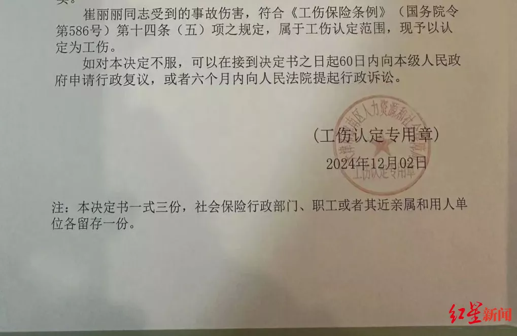 但她选择抗争,走进人社局申请工伤认定。2025年8月,天津津南区人民法院判决生效,崔丽丽成为国内首位因职场性侵获工伤认定的当事人。