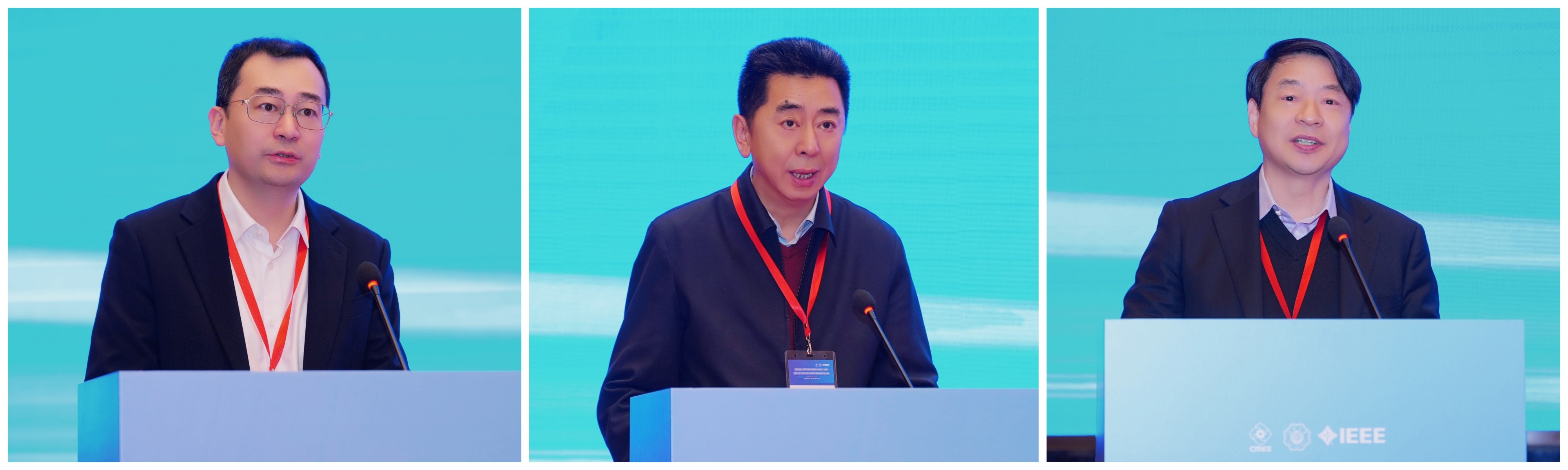 陈达(左)、洪军(中)、谢亿民先后致辞。主办方供图,下同