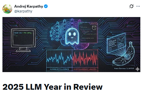 12月20日,据硬AI消息,Karpathy在社交平台X上发布的年度复盘中表示,LLM正在演变成一种新型智能,"比我预期的要聪明得多,同时也比我预期的要笨得多"。