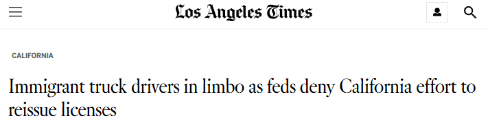 11月6日,联邦政府对加州的非户籍(non-domiciled)商业驾照项目展开审计,并向1.7万名司机发出了为期60天的取消通知,Amarjit正是其中之一。在一名无证卡车司机被指控在佛罗里达州非法掉头并造成三人死亡后,该项目成为政治关注的焦点。