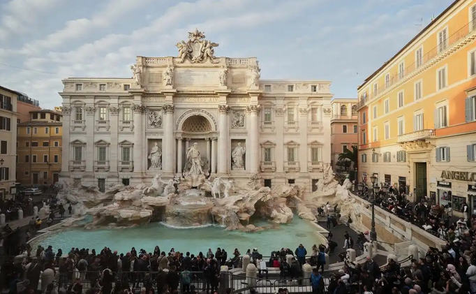 建于18世纪的巴洛克名作特雷维喷泉,是无数游客造访永恒之城罗马的首要景点。游客也通常会在许愿后将1枚硬币抛入喷泉内。