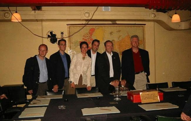 在据指拍摄于2002年的照片显示,马克斯韦尔在邱吉尔作战室(为一间博物馆)摆姿势拍照,在场的还有美国前总统克林顿(Bill Clinton)和奥斯卡影帝奇云史柏西(Kevin Spacey)等人(美国司法部)