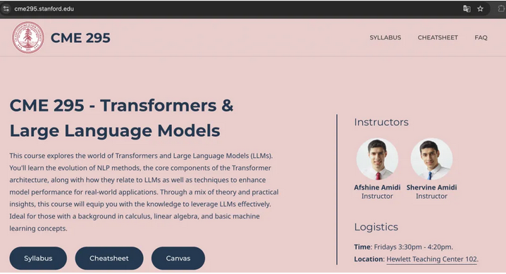 斯坦福大学提供了一门关于 Transformers 和大型语言模型(LLMs)的新课程 CME-295。
