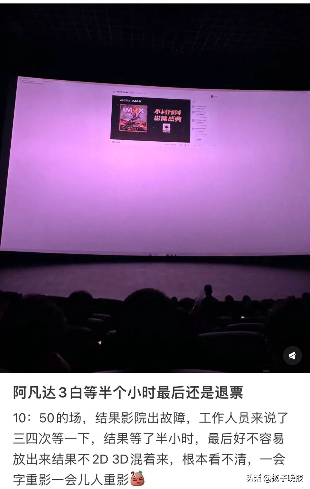 据了解,《阿凡达3》对影院放映设备要求高,大多数影院是普通放映设备,而此次《阿凡达3》版本多,分辨率高,帧率翻倍,不少影院的放映系统不堪重负,因此出现闪屏卡顿。虽然有的影院提前做了测试,但也只测试了一段,而这部片子长达198分钟。