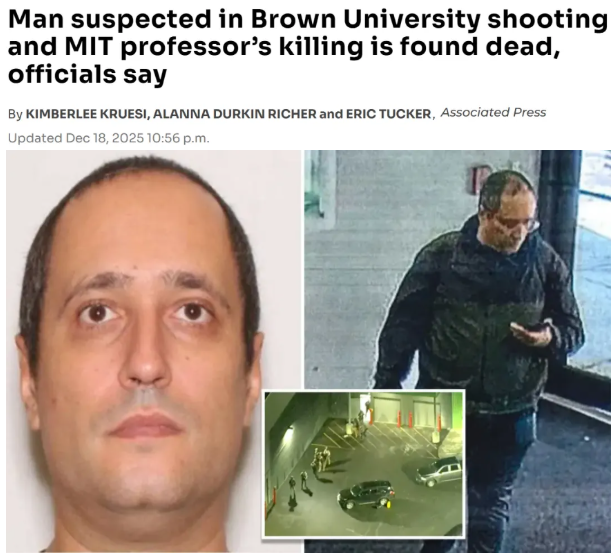 经调查,犯罪嫌疑人不仅与布朗大学的致命枪击事件相关,还被认为与随后发生的麻省理工学院教授枪击致死案件有关。