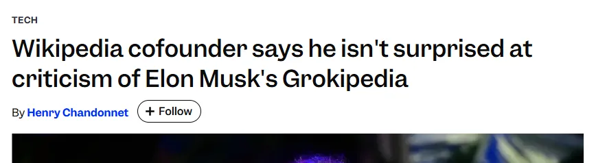 威尔士指的是埃隆·马斯克的 Grokipedia,这位特斯拉首席执行官在多年来指责维基百科存在偏见之后推出了 Grokipedia。