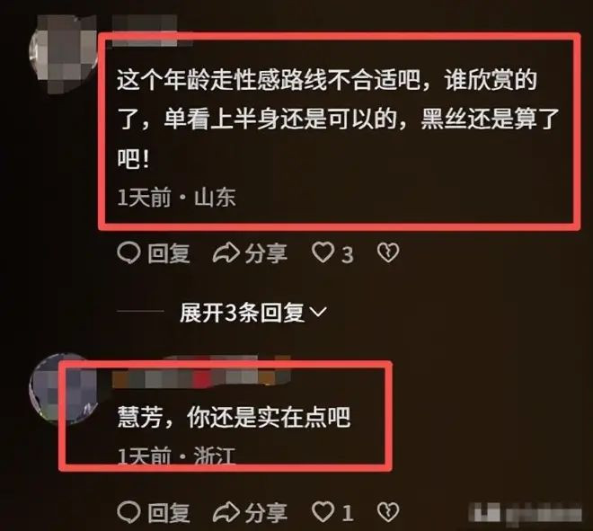 63岁都能当奶奶的张凯丽这几天又被骂上热搜了,起因是在前几天的新时代国际电影节,张凯丽一身黑丝短裙小高跟,还露大腿,瞬间引发了网友的热议,有的网友直接批评张凯丽,这么大年纪穿的一点也不得体。 也有很多网友表示很喜欢张凯丽的穿搭,还赞许张凯丽的勇气和挑战自我的决心。 至于为什么突然穿起了小高跟和黑色丝袜,张凯丽采访的时候表示:自己就主打一个听话,认真听取网友的建议。